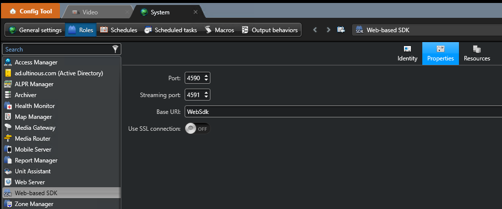 <WebSdk>: Type the value you set for the Web-based SDK in the Genetec Config Tool, in step 5. (WebSdkby default).